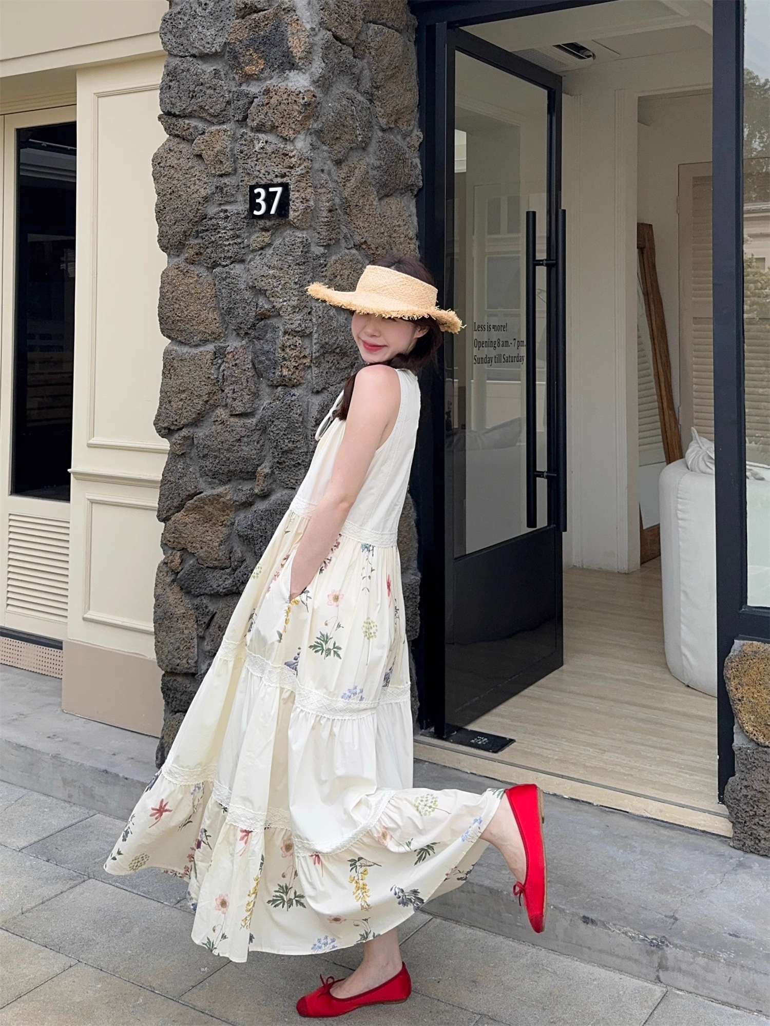 New Fashion Floral Design Beach Holiday A-line Sleeveless Vintage Dress HZ1024