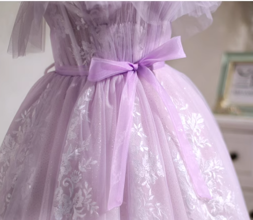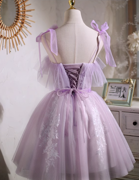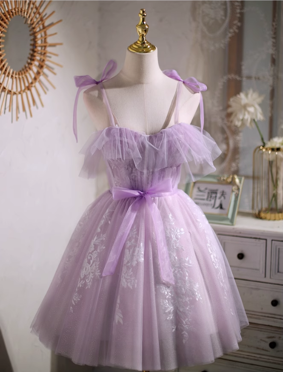New Fashion Purple Waistline Design Elegant Mesh Spaghetti Strap Homecoming Dress HZ1024