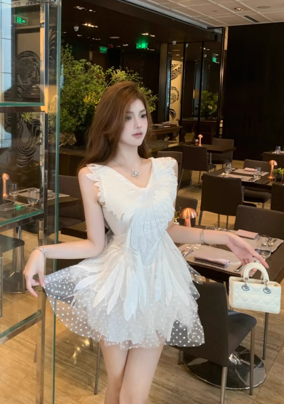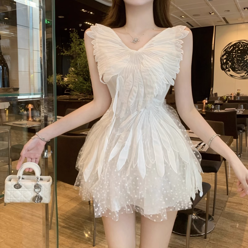 New Style White Tulle V-neck Design A-line Sleeevless Homecoming Dress HZ1024