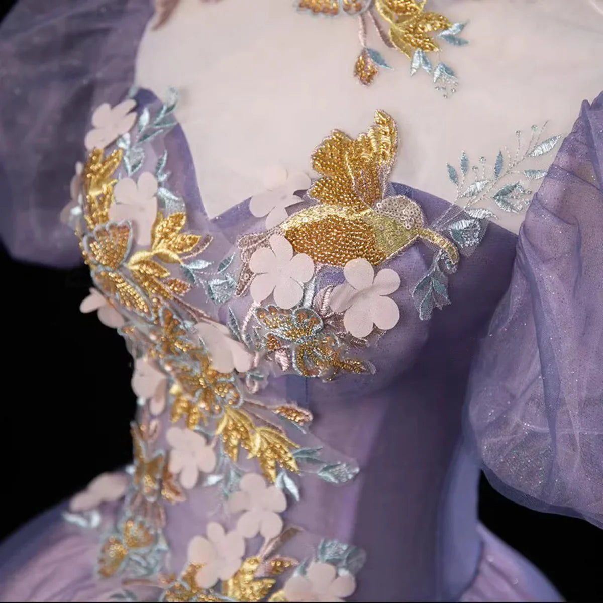 Pink and Purple Tulle Long Party Dress with Beadings, High Neckline Sweet 16 Dress HZ1024