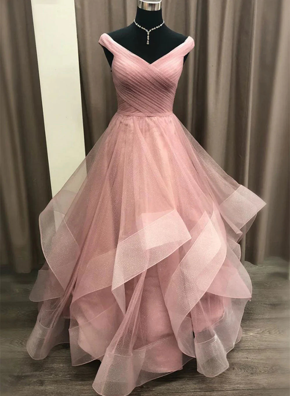Pink Tulle Layers Long Formal Dress, Pink Tulle A-line Prom Dress HZ1024