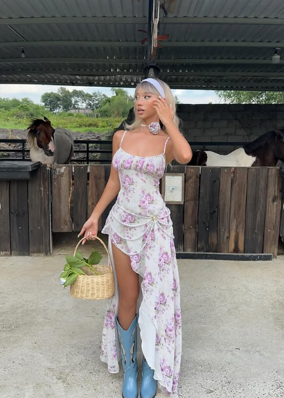 Printed Spaghetti Strap Sleeveless Chiffon High Low Prom Dress Party Dress HZ1024
