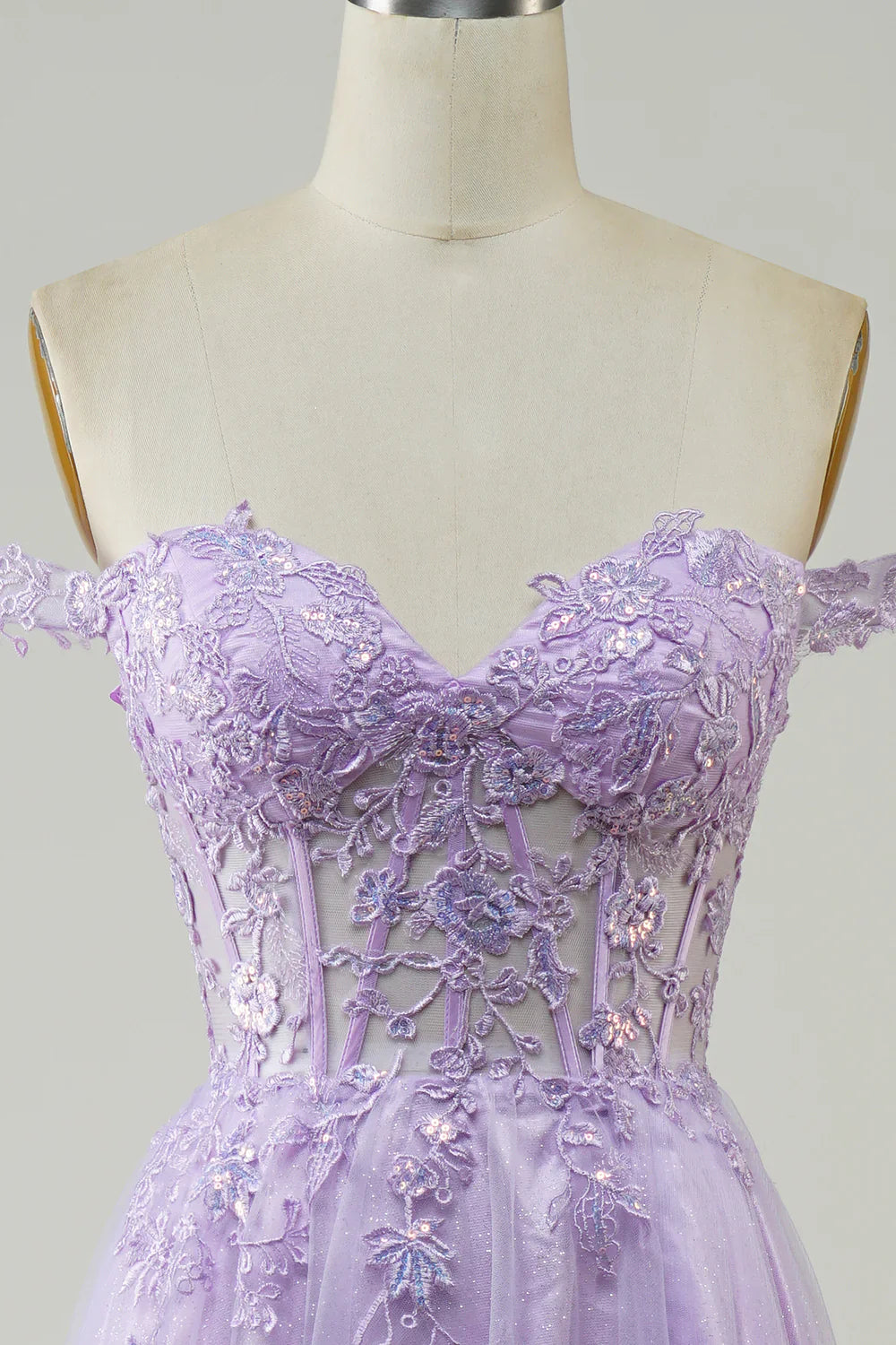 Purple Corset A-Line Long Tulle Prom Dress with Lace HZ1024