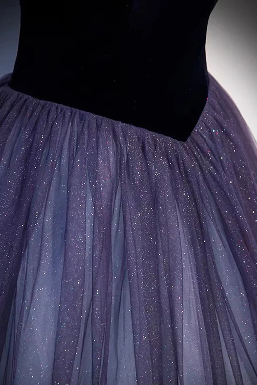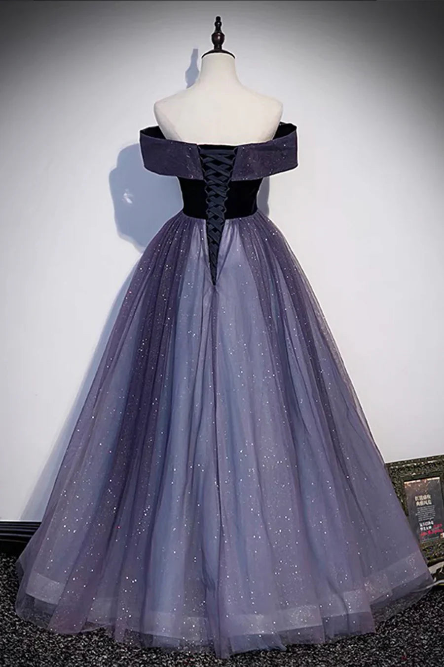 Purple Velvet Tulle Long Prom Dresses, A-Line Off the Shoulder Evening Dresses HZ1024