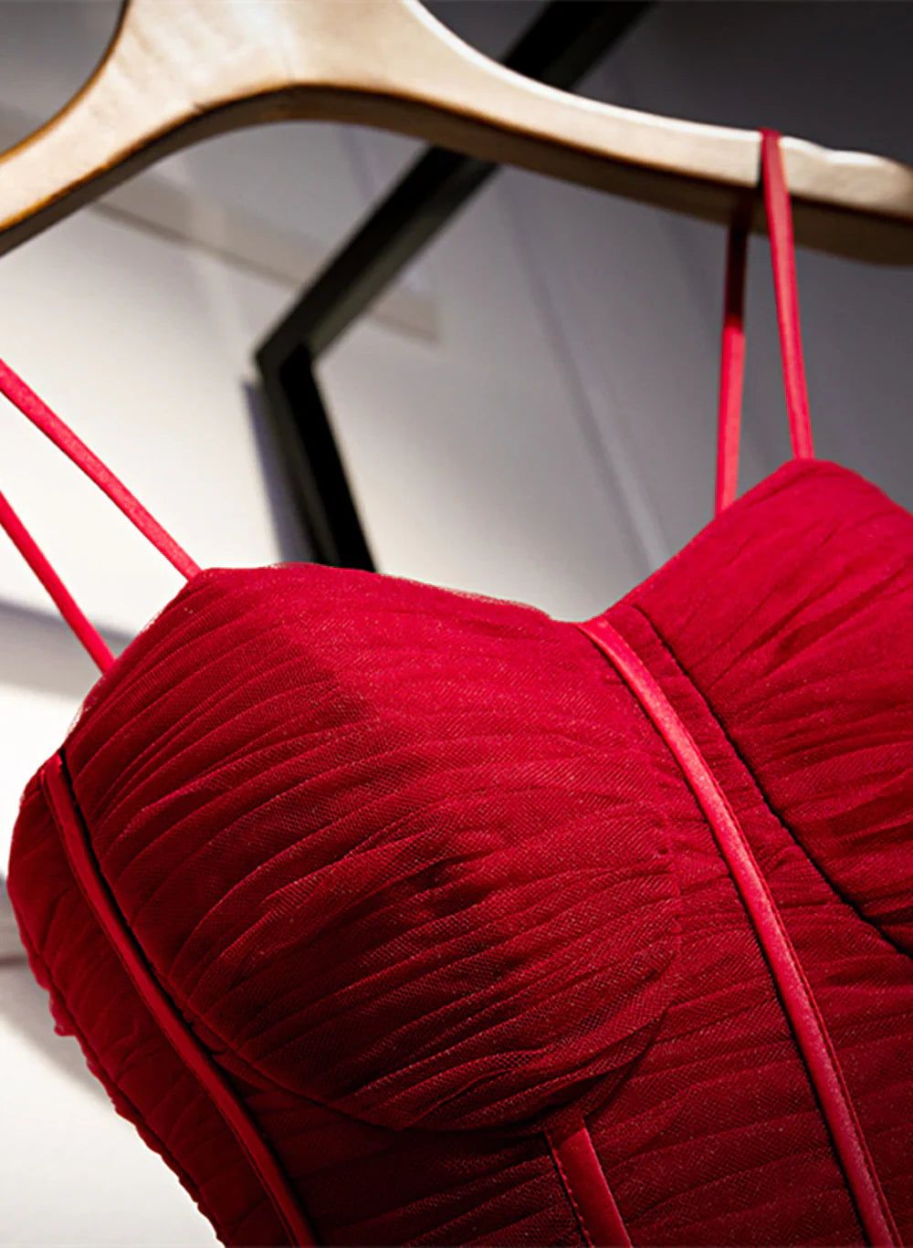 Red Sweetheart Simple A-line Tulle Prom Dress, Red Evening Dress Party Dress HZ1024