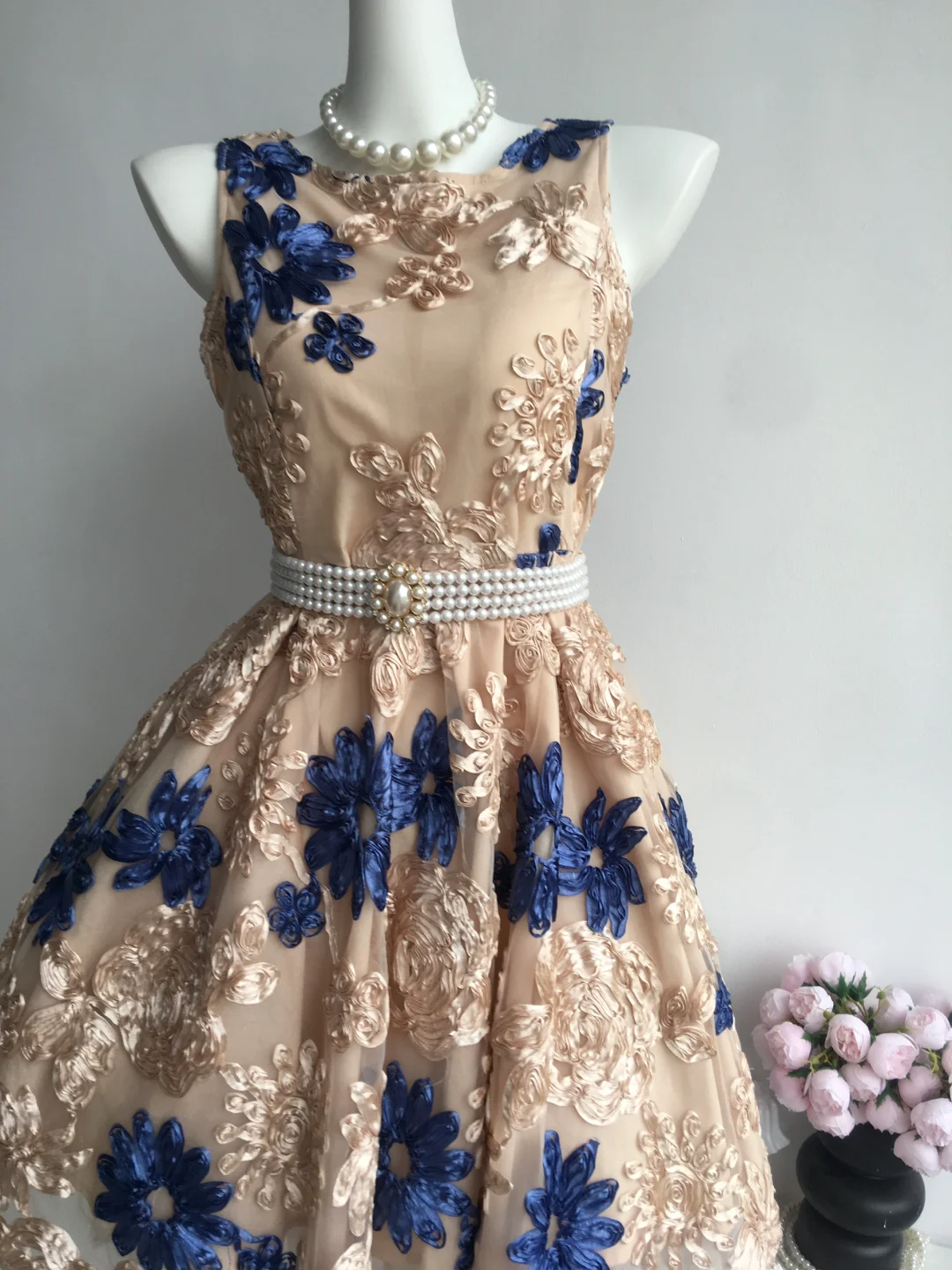 Retro Floral Applique Pearl Belt Design A-line Elegant Homecoming Dress Birthday Dress Party Dress HZ1024