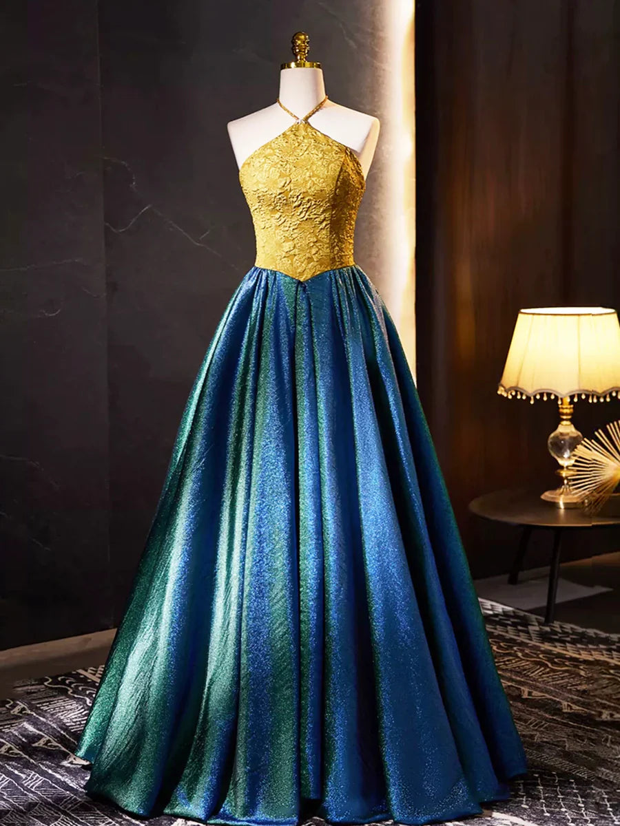 Retro Halter Neck Long Prom Dress, Elegant A-Line Evening Party Dress HZ1024