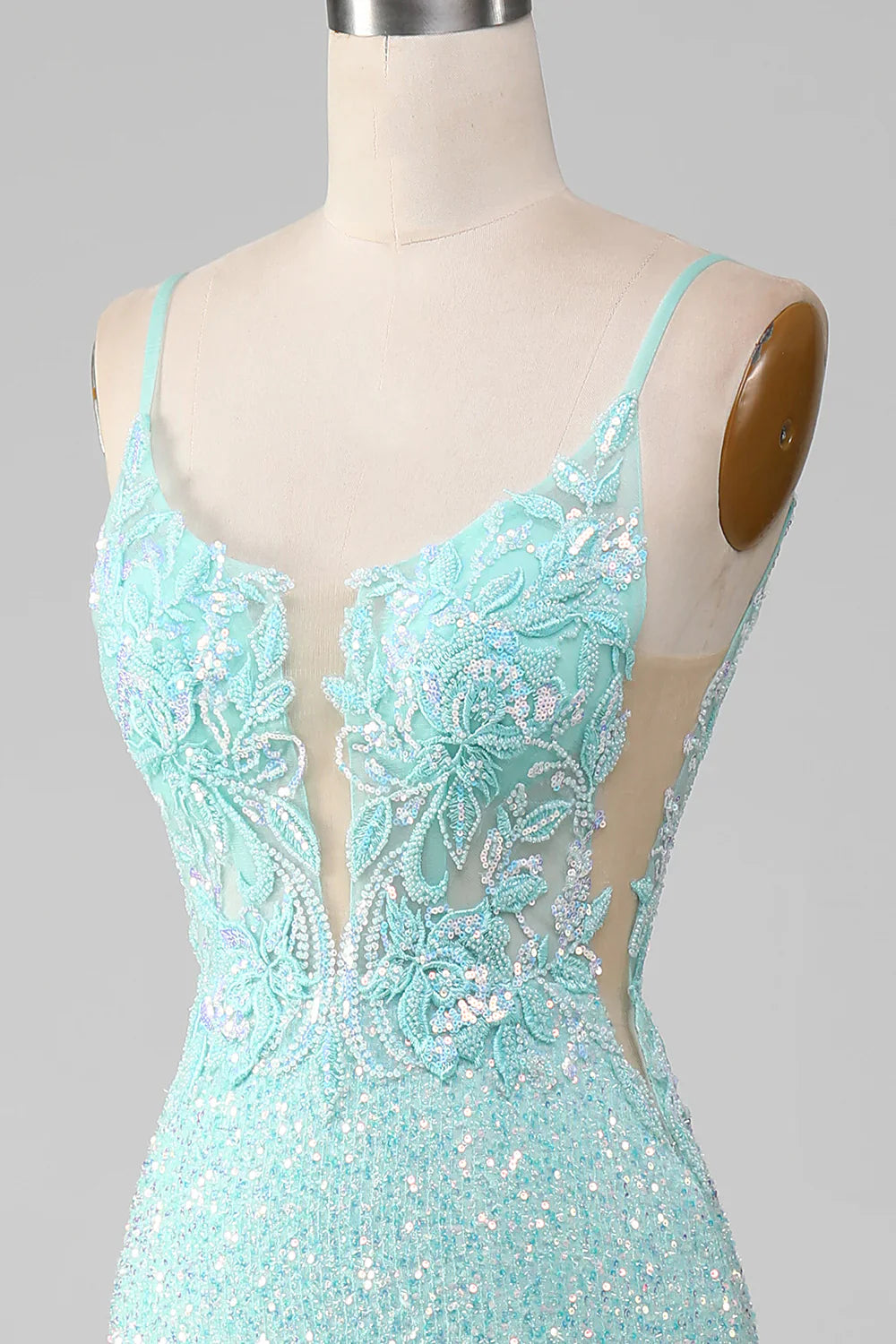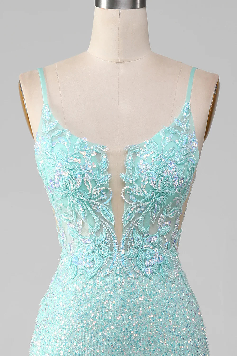 Sequins Light Green Sparkly Mermaid Prom Dress with Slit HZ1024
