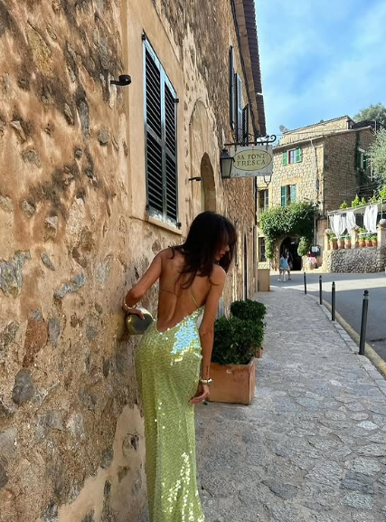 Sexy Low Cut Halter Green Sequined Backless Floor Length Ball Gown Evening Dress HZ1024
