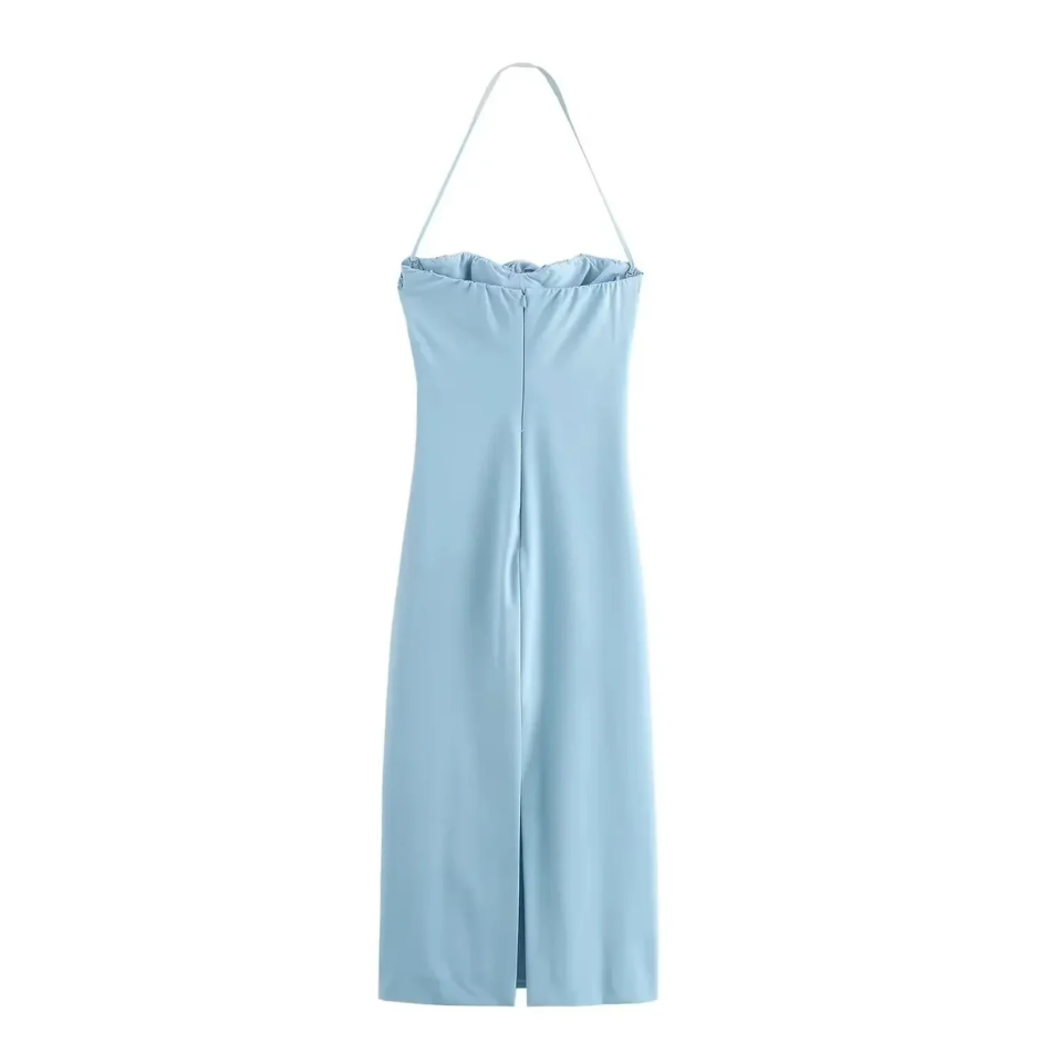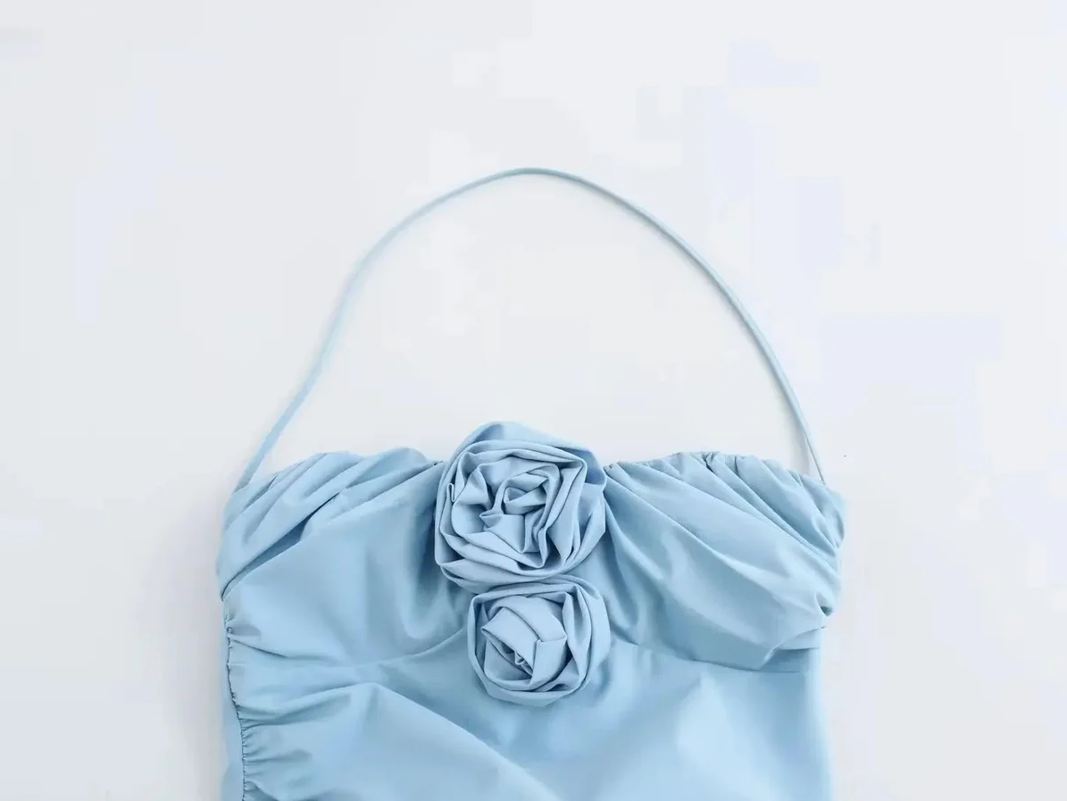Simple Blue Halter Neck Mermaid 3D Flower Ankle-Length Ball Gown HZ1024