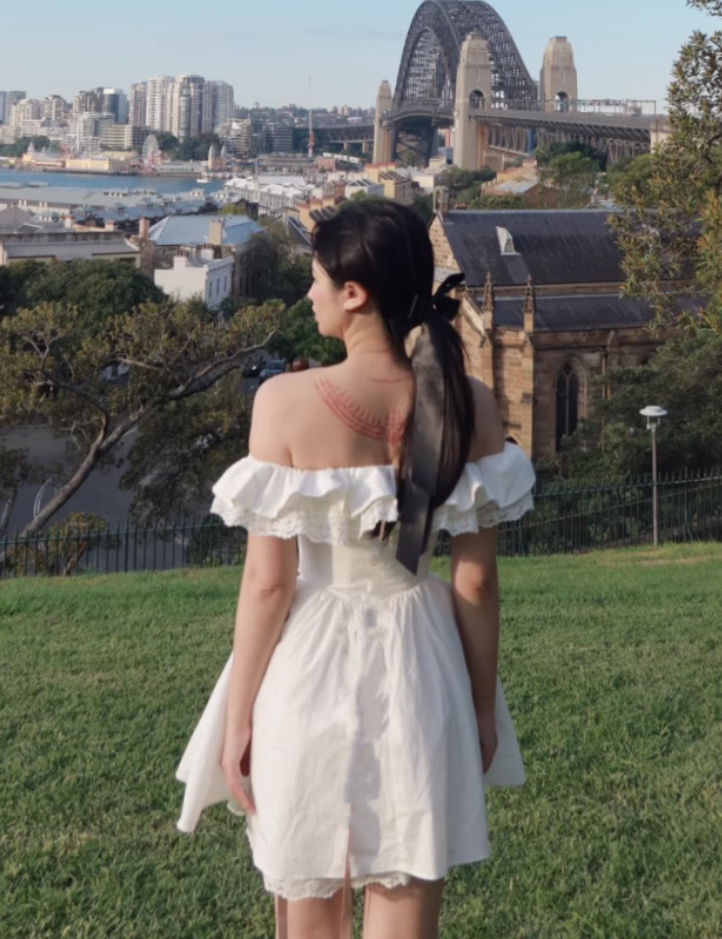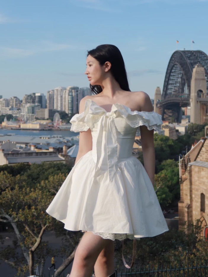 Simple White Off-the-shoulder Lace Bow Design A-line Party Dress Homecoming Dress HZ1024