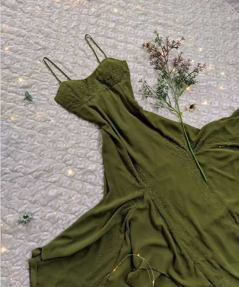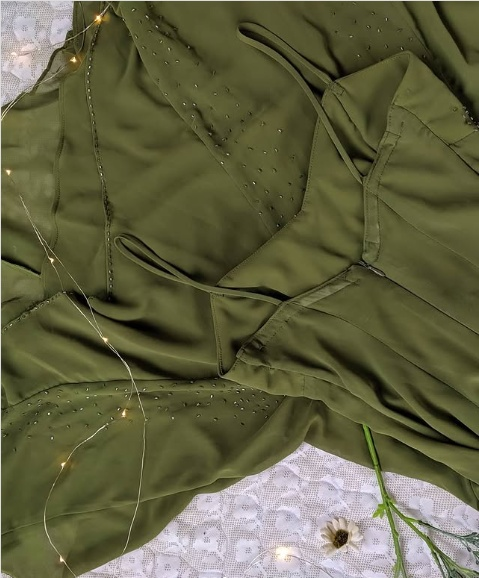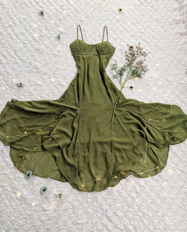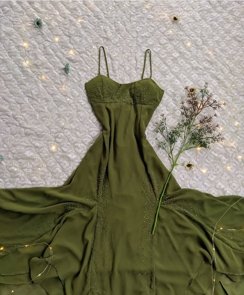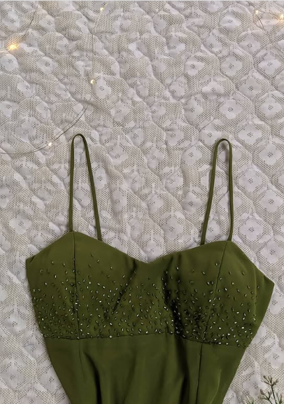 Soft Classic Strapless Sleeveless A-Line Green Beaded Chiffon Ball Gown Evening Dress HZ1024