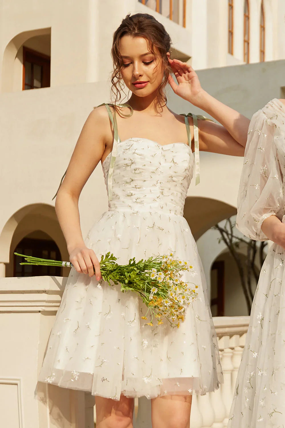 Stylish Spaghetti Straps White Floral Design A-line Spaghetti Strap Homecoming Dress HZ1024
