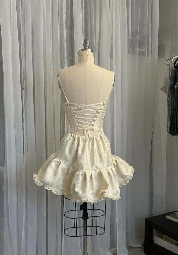 Vintage Beige Spaghetti Strap A-line Satin Lace-up Short Party Dresses Homecoming Dress HZ1024