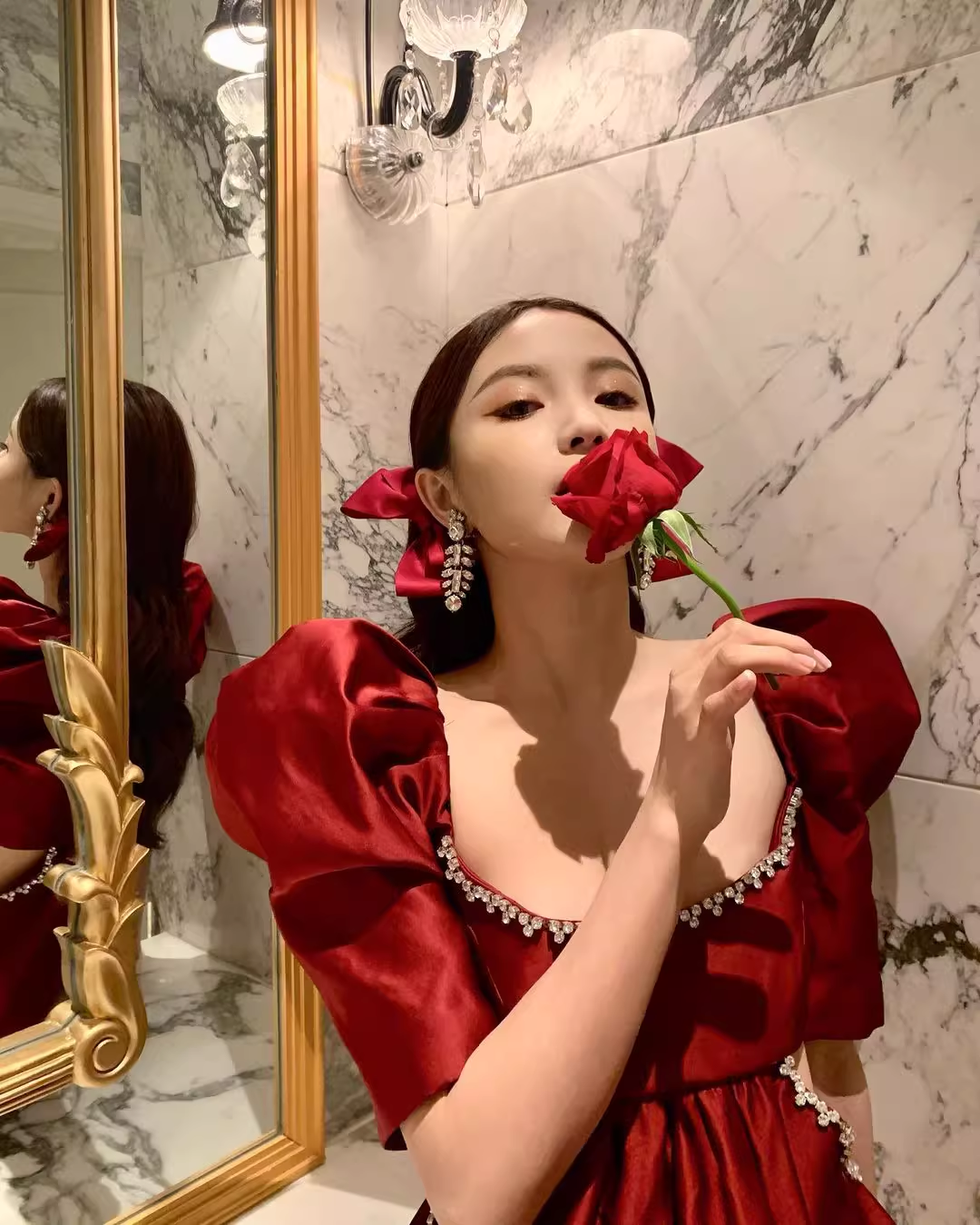 Vintage Burgundy A-Line Homecoming Dress Beaded Short Puff Sleeves Party Dress A-Line Cocktail Dress HZ1024