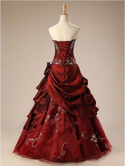Vintage Burgundy Embroidery Beaded Sweet 16 Quinceanera A-Line Floor-length Prom Dress Birthday Dress Evening Dress Ball Gown HZ1024
