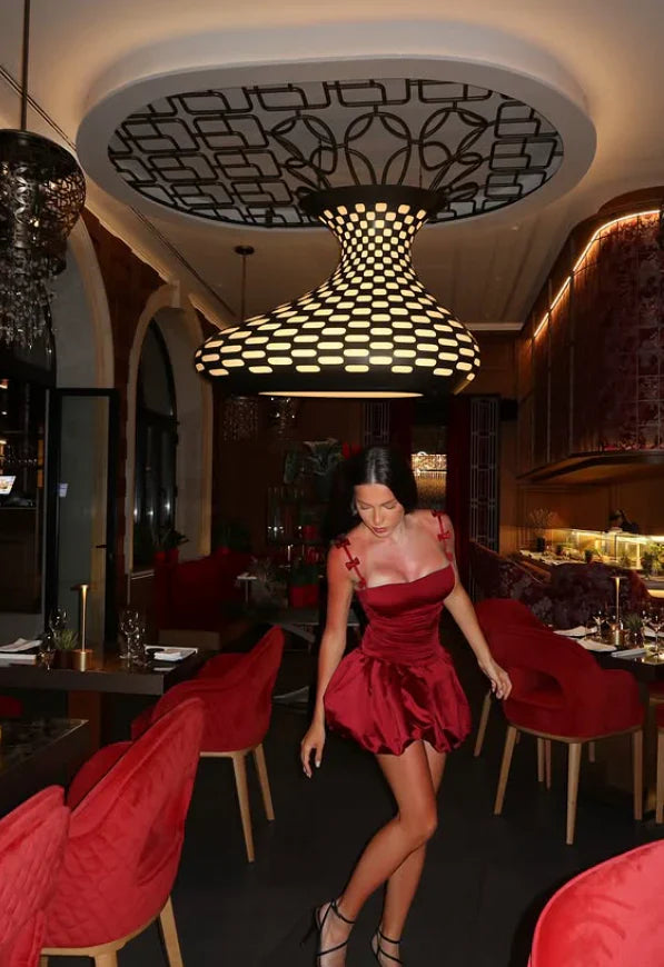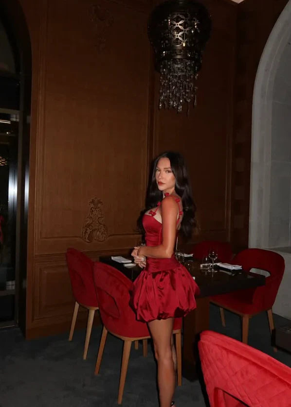 Vintage Burgundy Satin Spaghetti Strap Short A-Line Party Dress Cocktail Dress Homecoming Dress HZ1024