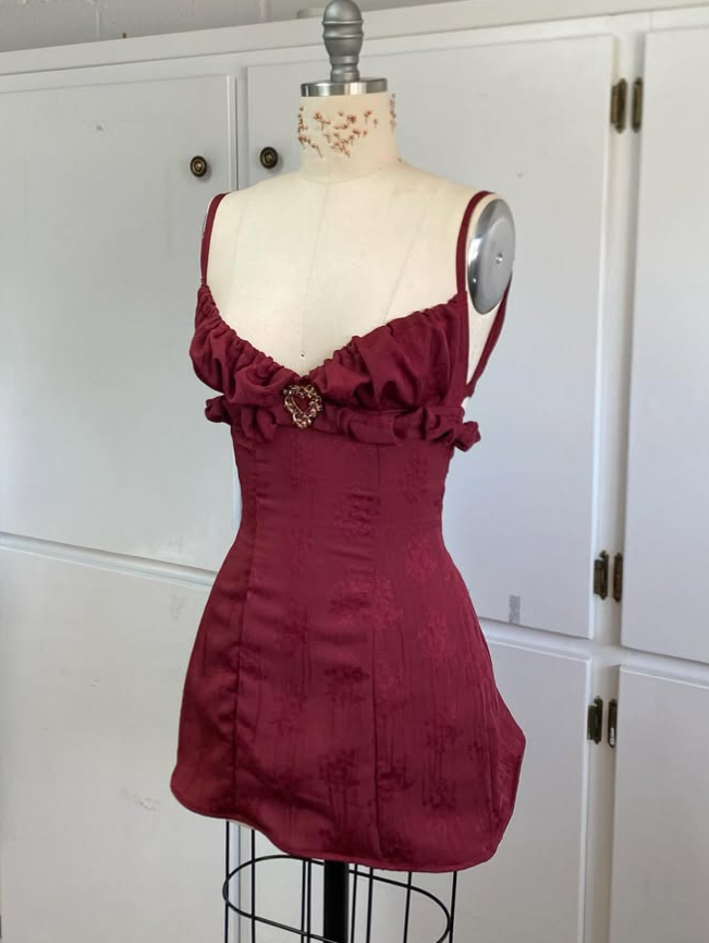 Vintage Burgundy Spaghetti Strap A-line Lace-up Short Party Dresses Homecoming Dresses, HZ1024