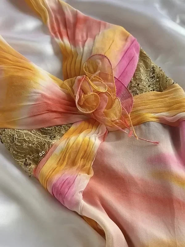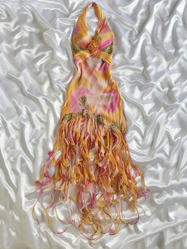 Vintage Chiffon Halter-neck Prom Dress Sheath Ruffled Evening Dress Formal Dress HZ1024
