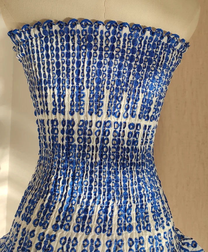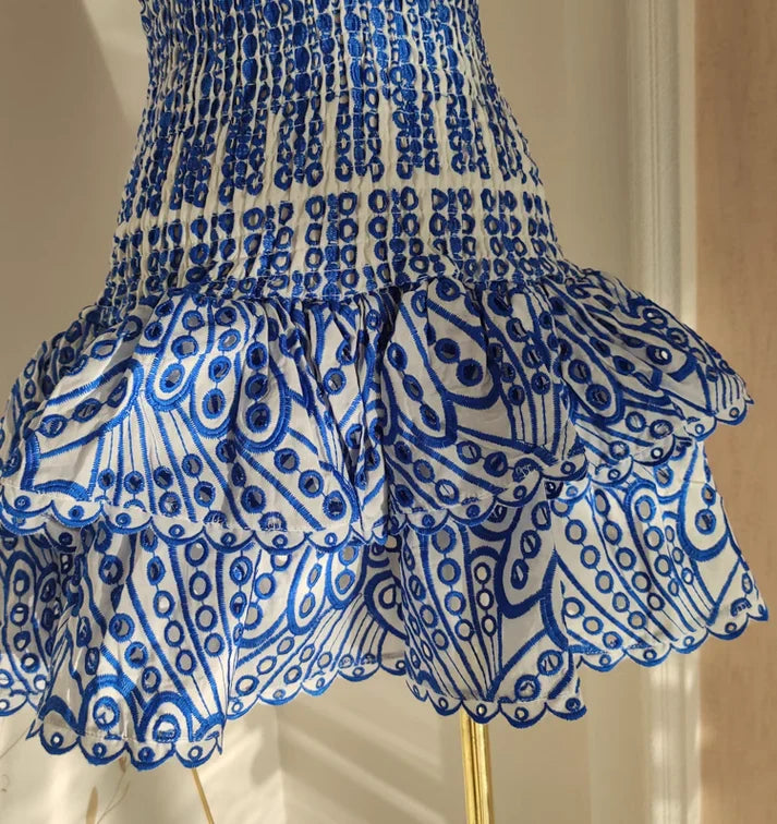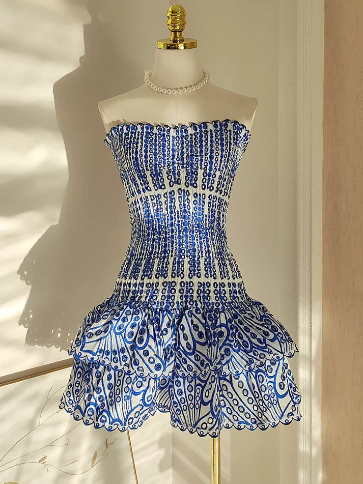 Vintage Dark Blue Pattern Design Strapless Mini Party Dress Homecoming Dress HZ1024