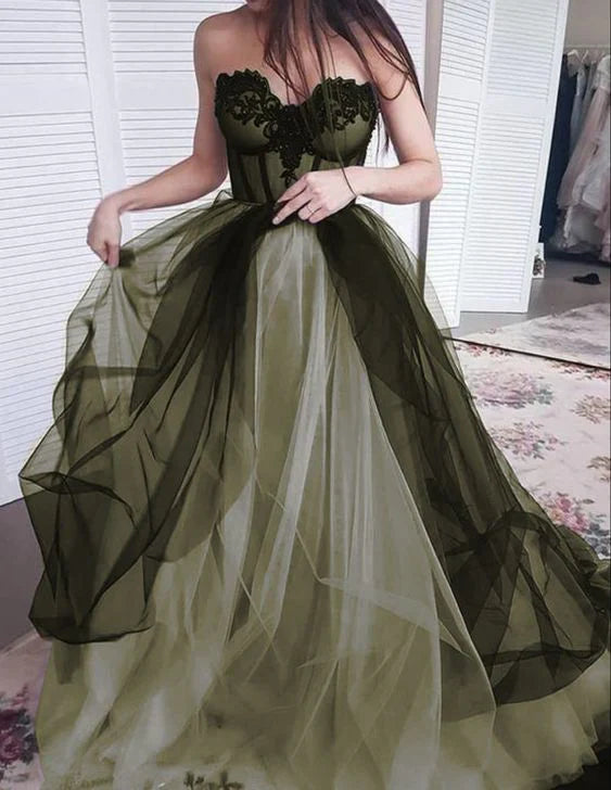 Vintage Dark Green A-Line Prom Dress Long Sweetheart Evening Dress Strapless Formal Dress HZ1024