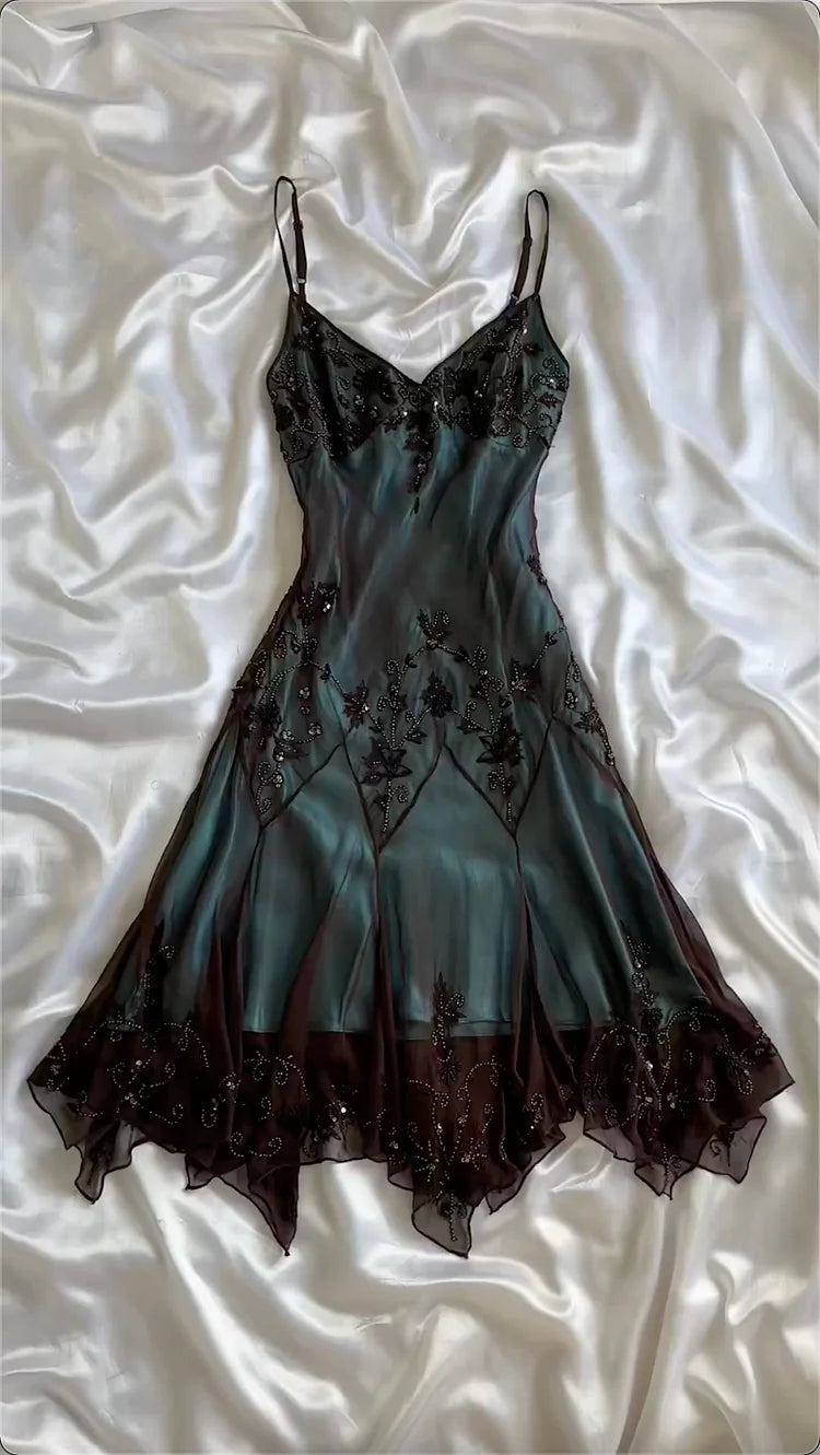Vintage Dark Green Beaded Embroidery Prom Dress Sheath V-neck Evening Dress Formal Dress HZ1024