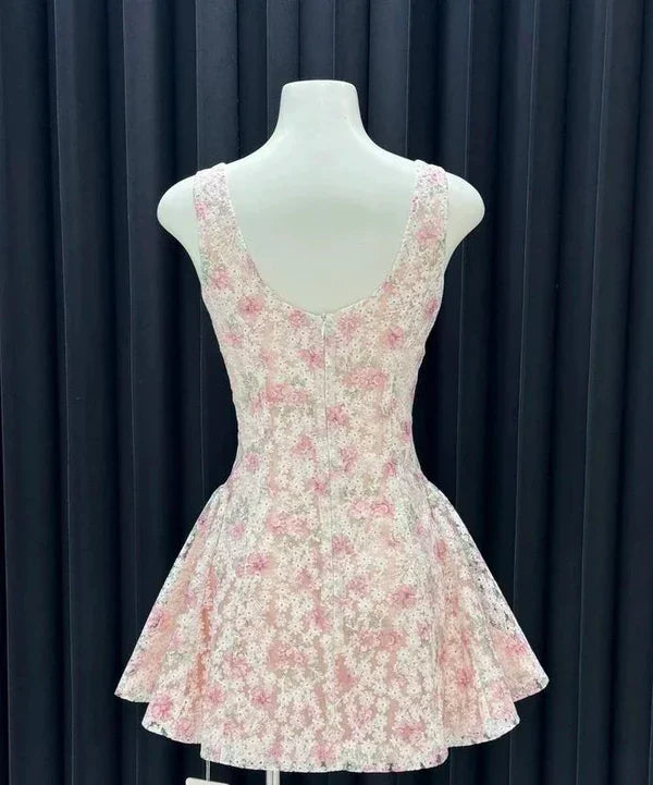 Vintage Floral A-Line Homecoming Dress Square-neck Party Dress Short Cocktail Dress HZ1024