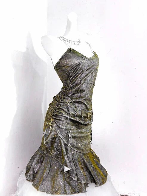 Vintage Green Spaghetti Strap Ruffled Hem Hem Short 16th Birthday Party Dress Homecoming Dress HZ1024