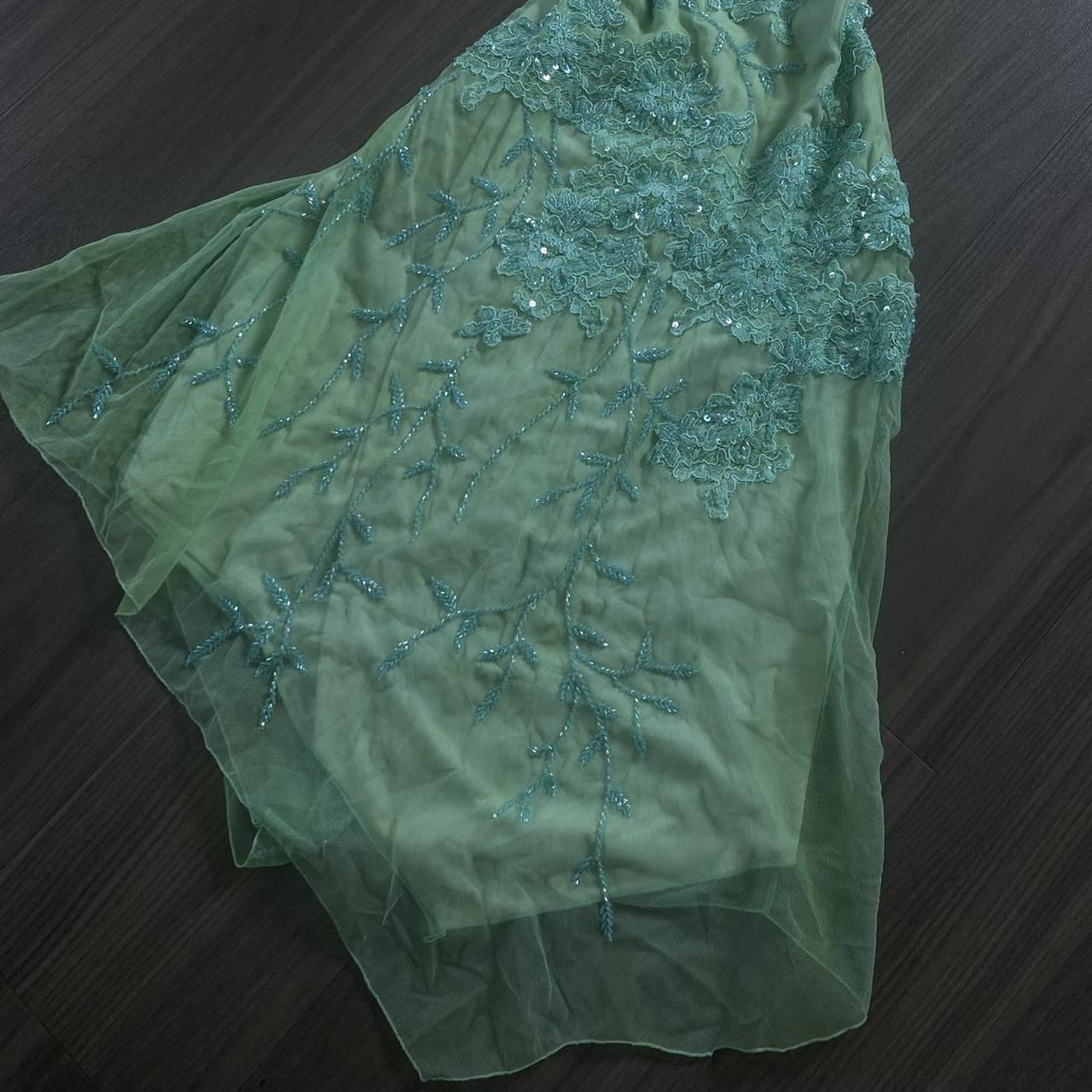 Vintage Green V-neck Straps Sleeveless Sequined Lace Irregular Skirt Prom Dress Evening Dress HZ1024