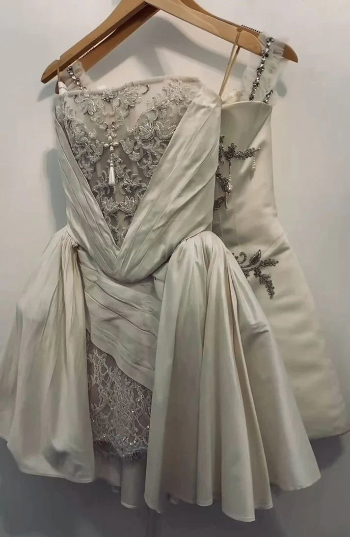 Vintage Ivory Applique Strapless A-Line Short Party Dress Cocktail Dress Homecoming Dress HZ1024