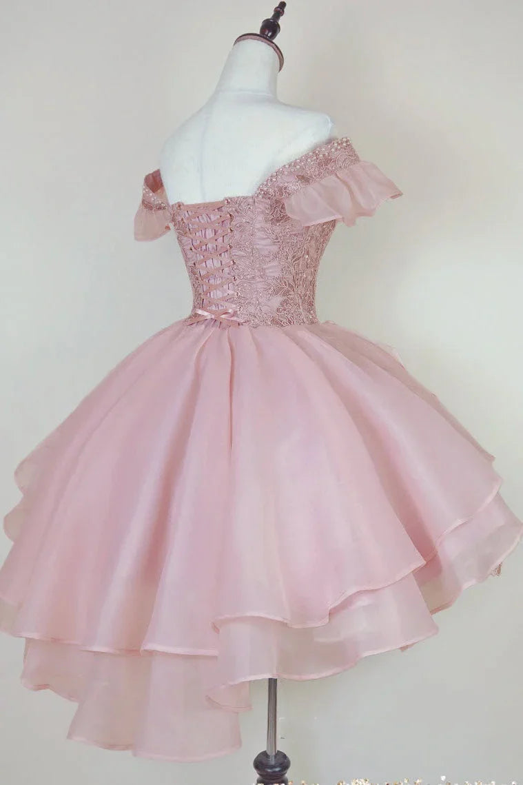 Vintage Pink Beading Design Short Evening Dress, A-line Off-the-shoulder Homecoming Dress HZ1024