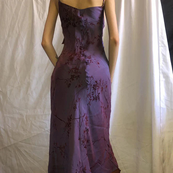 Vintage Purple Printed Strapless Ruffled Mesh Prom Dress Evening Dress HZ1024