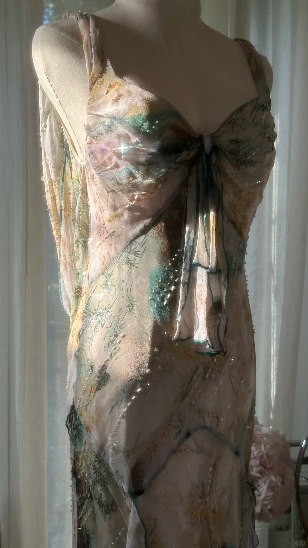 Vintage Sparkling Spaghetti Strap Backless Sweetheart Design Romantic Chiffon Evening Dress Prom Dress HZ1024