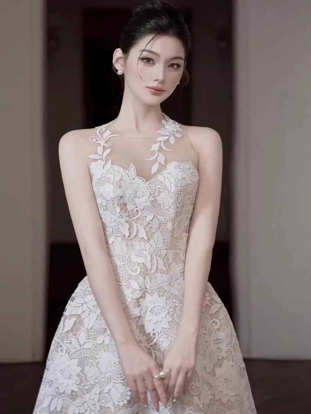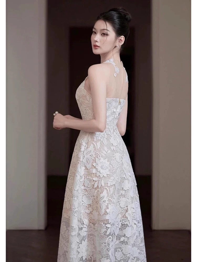 Vintage White Lace Applique Prom Dress Sheath Evening Dress Long Formal Dress HZ1024
