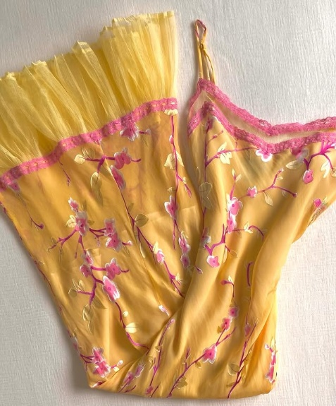 Vintage Yellow Halter Printed Chiffon Mermaid Prom Dress Evening Dress HZ1024