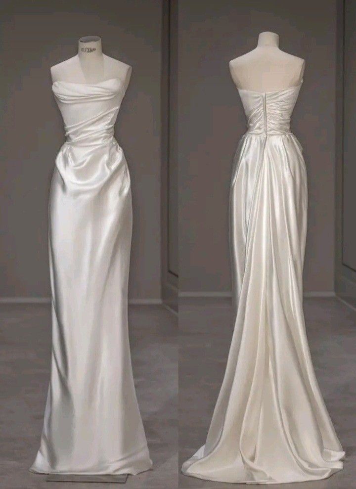 White Simple Strapless Satin Long Evening Gowns HZ1024
