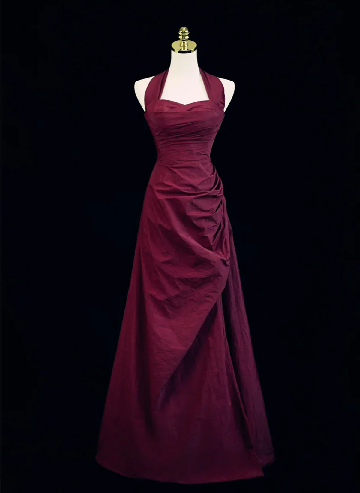 Wine Red A-Line Halter Vintage Style Prom Dress, Wine Red Long Evening Dress HZ1024
